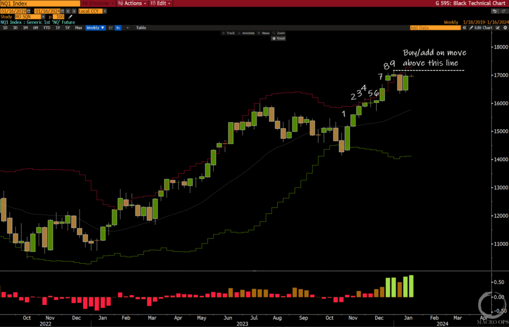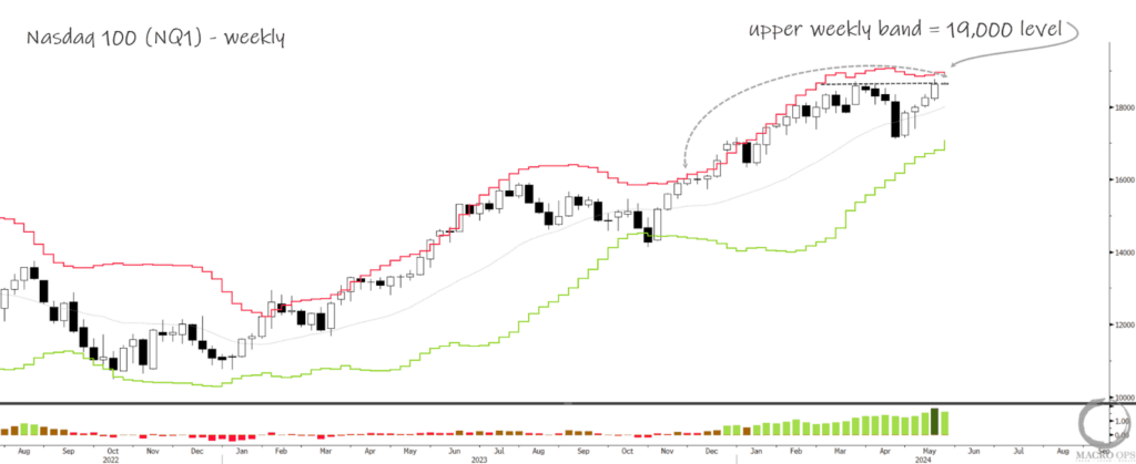 - Multi-asset fund equity exposure is surging, with a suggestion to look for a developing top in names like MSFT, AAPL, NVDA, and GOOGL.